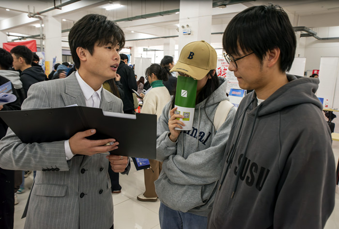 招聘会现场,李升和详细了解参会企业的岗位需求、人才吸纳及毕业生投递简历等情况,认真听取用人单位对学校人才培养、就业服务等方面的意见与建议,并现场与毕业生亲切交谈,查看毕业生求职简历,勉励毕业生积极应对当前就业形势,及早实现理想就业。