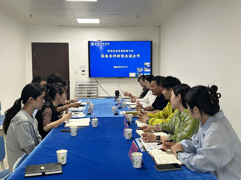 为推进校企深度合作,实现资源共享、协同发展,5月7日下午,懿文汇数字科技(安徽)有限公司(发现蚌埠平台)总经理杨连高一行7人莅临完美app官方在线入口财经学院,就深化合作项目展开交流座谈。财经学院党委书记杜小明、院长郝世绵、安科绿农电商直播团队成员热情接待并参与座谈。