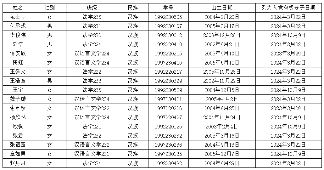 为做好2025年下半年学院发展对象确定工作,各支部通过听取党小组、培养联系人、党员和群众意见,进行发展对象候选人考核,经支部委员会讨论,拟确定范士莹等17位同志为发展对象。根据发展党员工作有关要求,现将其有关情况公示如下: