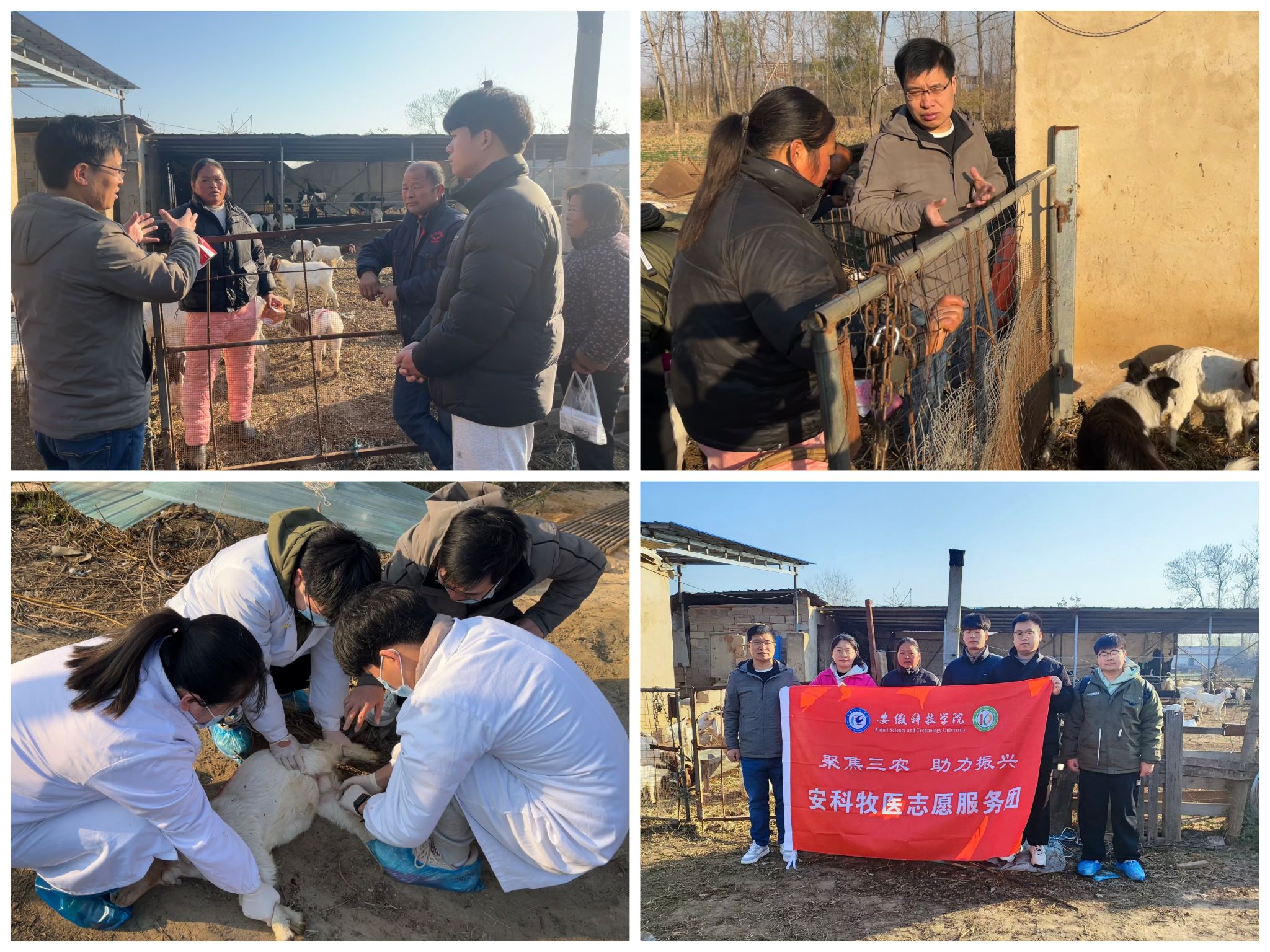 为积极响应国家关于科技兴农、乡村振兴的战略方针,进一步推进校地产学研用融合发展,12月24日,在凤阳县畜牧局有关同志的陪同下,动物科学学院副院长、安徽省牛羊产业技术体系岗位专家贺绍君教授带领“安科牧医志愿服务团”研究生团队赴凤阳县大庙镇开展技术服务。