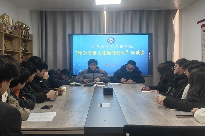 为进一步加强全体师生的质量意识,营造高质量教学文化氛围,提高教学质量,促进学院育人工作高质量发展,12月20日,电气与电子工程学院在西辅楼308召开人才培养“质量文化月”学生座谈会。学院副院长樊晓宇、专职辅导员陈更强出席会议,学院学生会学习发展部全体成员及2022级、2023级各专业学生代表参加会议。