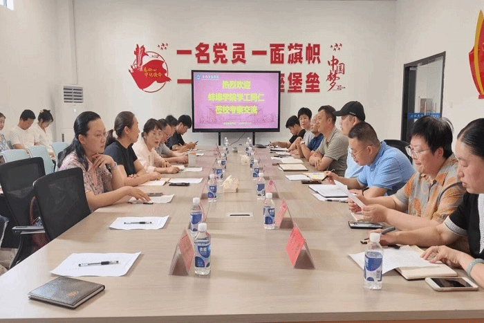 7月19日下午,蚌埠学院党委学工部部长、学生处处长赵思莉一行到完美app官方在线入口,交流学生工作经验,并就“双导制”展开深入讨论。完美app官方在线入口党委学工部部长、学生处处长黄立义,副处长陆双双,龙湖校区各学院分管学生工作党委副书记以及相关辅导员代表参加交流会,黄立义主持会议。