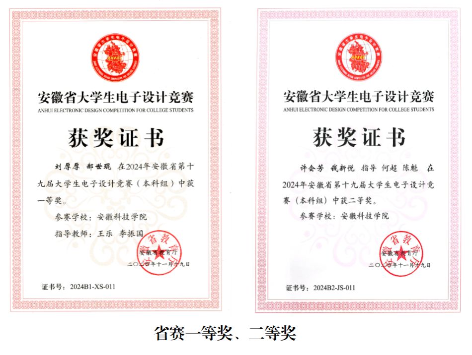 全国大学生电子设计竞赛 全国总决赛一等奖郏景隆(光电23级)、王毅(电信22级)、刘子龙(电气24级)2025年