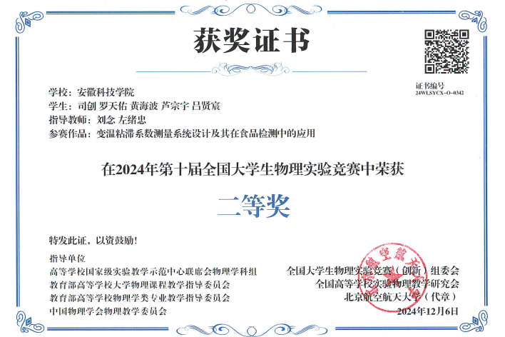11月25日,国家级实验教学示范中心联席会物理学科组、教育部大学物理课程教学指导委员会、全国高等学校实验物理教学研究会、中国物理学会物理教学委员会和全国大学生物理实验竞赛组委会联合主办的第十届全国大学生物理实验竞赛(创新)圆满落幕。比赛吸引了来自包括北京大学、清华大学、中国科学技术大学、浙江大学等全国31个省667所高校的2755只队伍,共计15715名师生参赛。我校选派的5支参赛队伍在此次竞赛中表现突出,获得国家二等奖1项、三等奖2项、优秀奖2项的优异成绩,学校获得优秀组织奖。