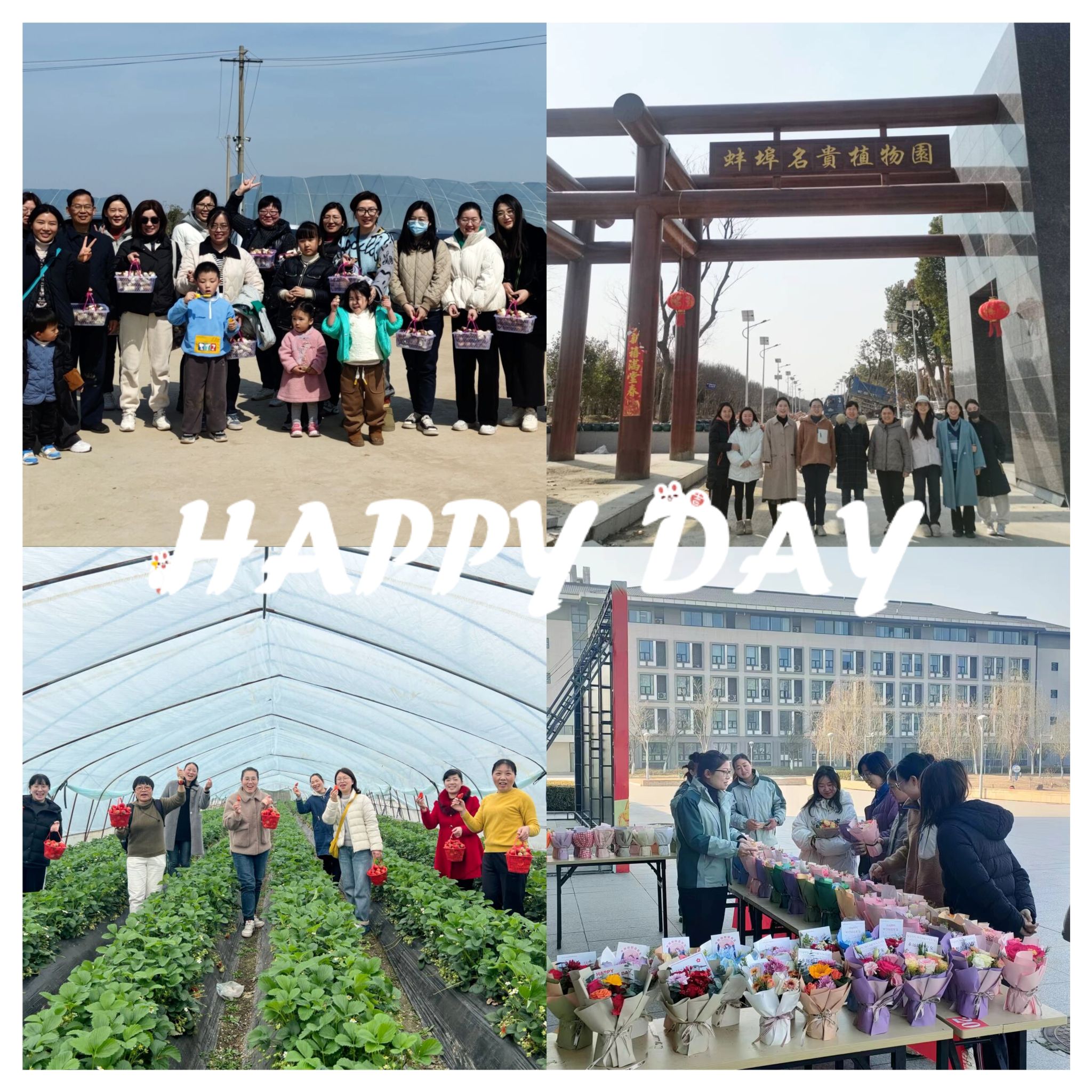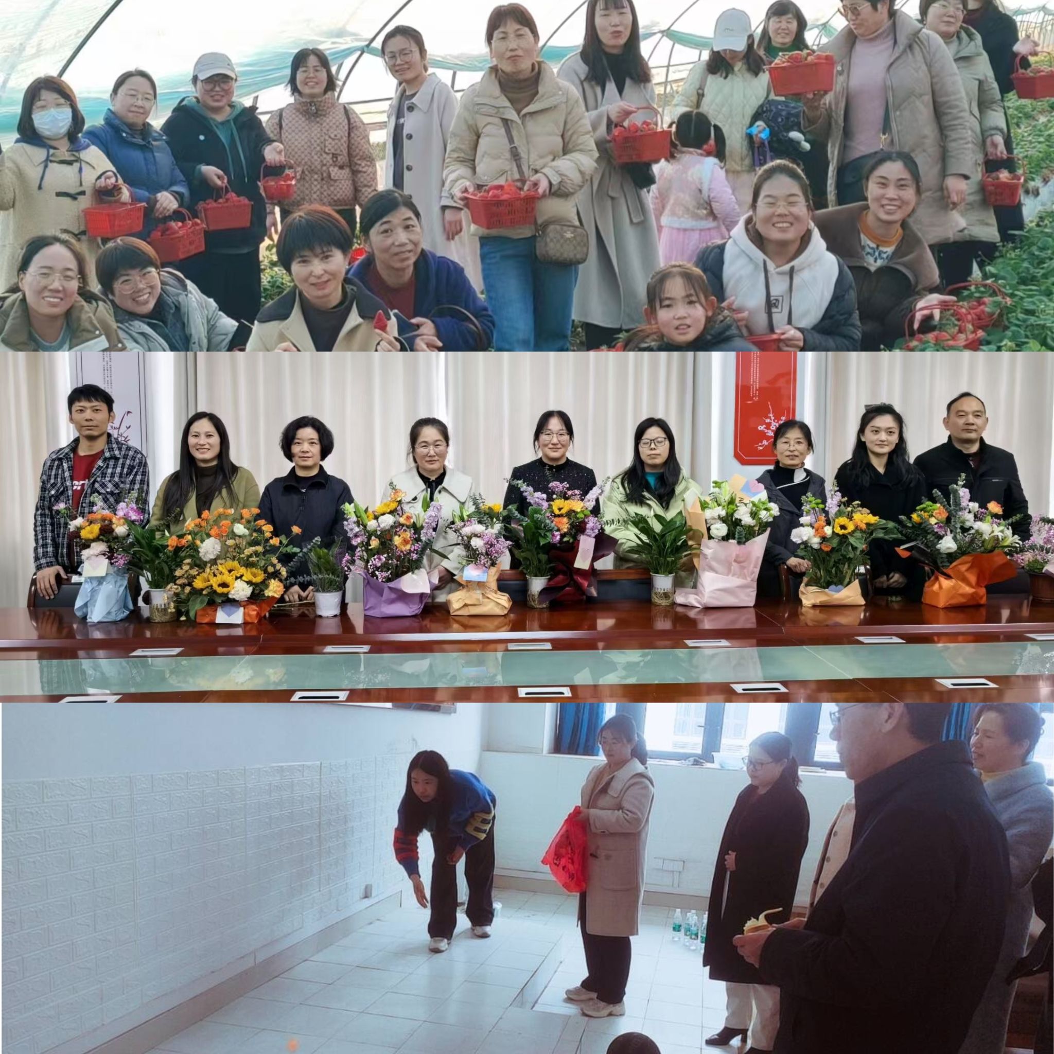 人文学院开展“精心花艺 品味美好”创意插花活动;财经学院紧扣学校重点工作,开展学校教学审核估计知识抢答活动;建筑学院畅享乡村美景,感受乡村变化;食品工程学院组织到凤阳县廉洁教育中心观看图片、视频、影片,上了一堂全面生动的师德师风教育课;农学院、信息与网络工程学院、体育教学部等组织了踏青采摘,领悟春光美景;机关分工会组织看电影、爬山踏青;为学校服务的物业公司分别在龙湖校区和凤阳校区组织向女同胞赠送鲜花活动。