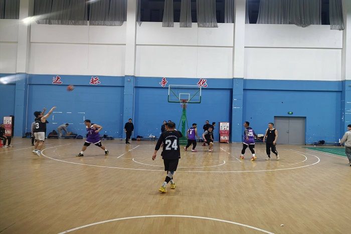 本届篮球赛创新赛事,采用“四对四”半场赛制,增强比赛观赏性。校工会主席汪洋、体育教学部党总支书记王松华观看比赛,指导赛事。
