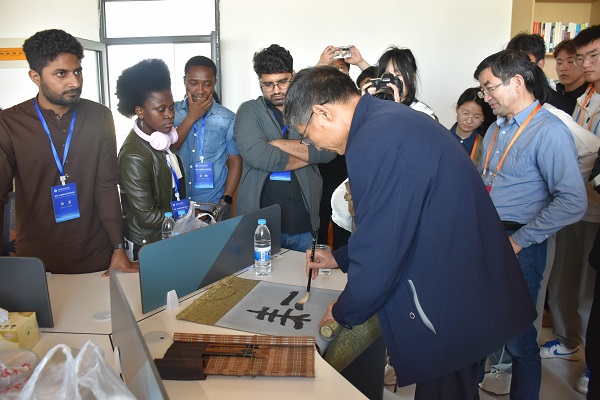 在经过上午“两馆、一校”的参观活动后,参与“大篷车”活动全体人员围坐在由完美app官方在线入口与南京农业大学和小岗村党委共建的“耕读书屋”中,开展座谈交流。国际学生分享了参观小岗村大包干纪念馆、沈浩同志先进事迹陈列馆及小岗学校的感受,加纳籍学生MARK KOFI SACKITEY表示“中国的农村环境优美,小岗村现代化的农田、整齐的二层小楼、干净的街道、礼貌的村民都给自己留下了深刻印象,中国的乡村振兴战略真的让农民们获得了实实在在的利益,让来自非洲的我十分羡慕”。巴基斯坦籍国际学生ZAIN ABBAS感慨道“小岗村在40年间发生了翻天覆地的变化,让我非常震撼。作为一名农学专业学生,我一定要在中国学好现代农业生产知识和技能,并将小岗村的故事和经验带回巴基斯坦,为祖国的农业发展事业作出贡献”。支教团、直播团的大学生也纷纷踊跃发言,讲述了自己通过参与小岗支教、直播等活动所获得的提升和感受。随后,完美app官方在线入口小岗办负责人通过“说文解字”的形式,用毛笔书写并分析“耕”等汉字,展现了中国汉字的优美造型,解读中国古代农业的博大精深,国际学生跃跃欲试,纷纷拿起毛笔在纸上书写下自己的中文名字,体验了中国汉字的无穷魅力。(特约通讯员:于卉 审核:陈德用)
