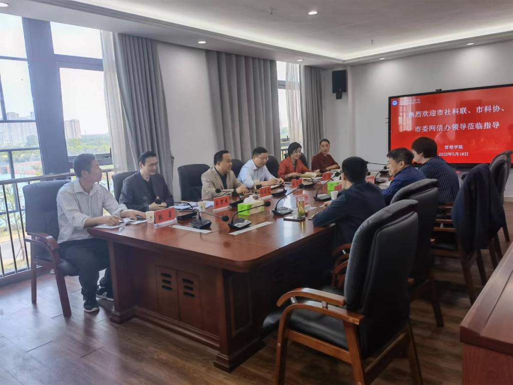 5月18日上午,蚌埠市社科联党组书记、主席胡凤芝,蚌埠市科协党组书记、主席刘善权,党组成员、副主席常芳,蚌埠市委网信办副主任关贺杰等一行6人来校洽谈共建研究生联合培养基地等工作。管理学院负责同志参加了座谈。