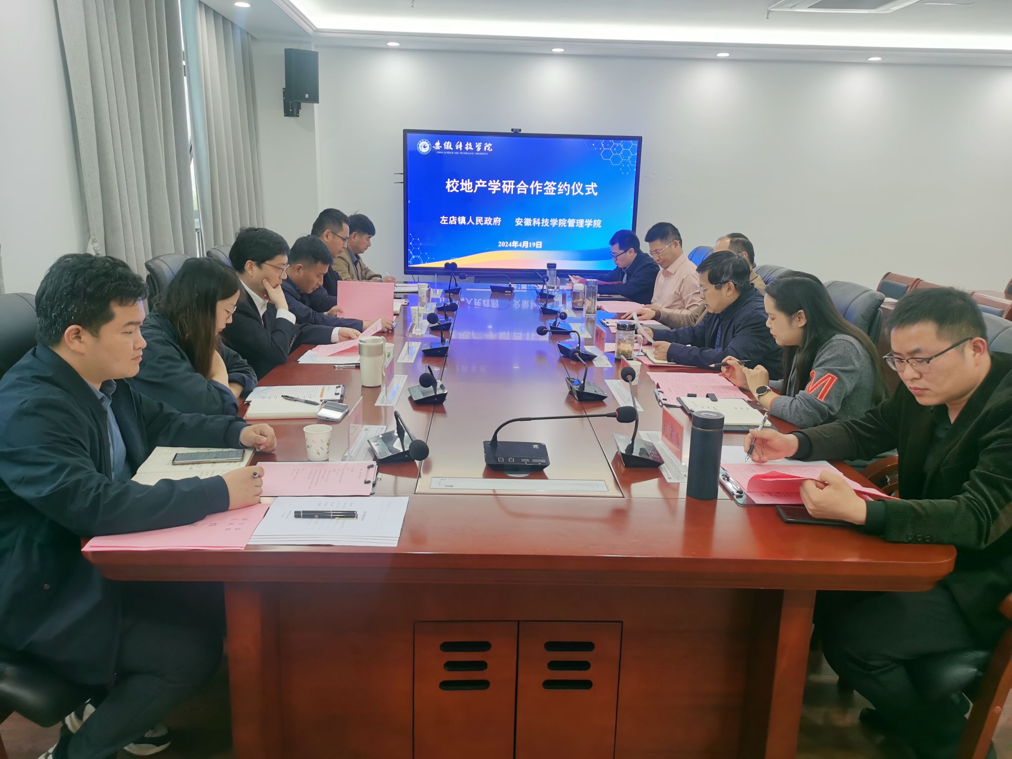 为进一步推动校地融合发展,精准对接我校科技、人才与地方经济发展之间需求度,推动校地产学研用深度融合,4月19日,长丰县左店镇党委书记葛柏,党委副书记杜峰,党委委员、宣传委员郭越,党委委员、武装部长刘海涛,党政办主任吴建华,左店社区党总支书记代宗恒一行六人应管理学院邀请,来校洽谈校地合作事宜,校科研处副处长刘宗飞,管理学院党委书记丁景良、院长陈传万、副院长郑谦、副院长张国宝,完美app官方在线入口服务地方发展研究院院长余海兵教授出席签约仪式,仪式由丁景良主持。