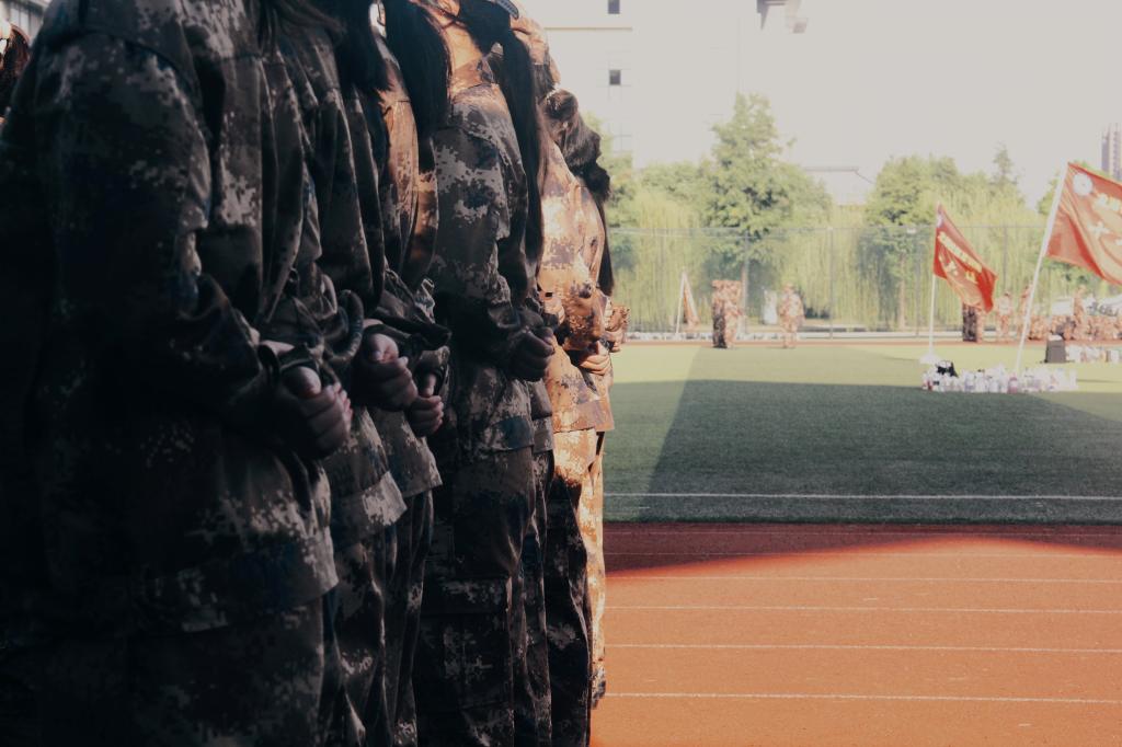 在军训中,教官的谆谆教导,同学们的互相帮助,老师和学姐学长的关心,让我们收获了温暖,学会了团队合作,更学到了军人身上钢铁一般的意志,铁一般的纪律意识,赤诚如血的爱国之心。同学们精神抖擞,步调一致,不厌其烦的一次又一次的训练原地转法,立定,原地踏步,齐步等基本动作,每个动作如臂使手,金石可镂,每次落脚铿锵有力,全身的疲惫击败不了心中的斗志。