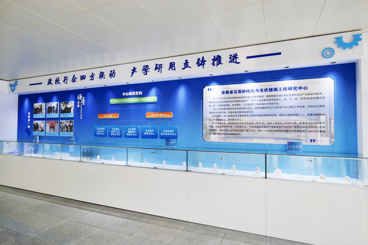 一是应用研究,主要包括绿色高纯硅基材料应用研究、特性硅基玻璃应用研究、功能薄膜材料应用研究、化工新材料应用研究、新能源材料应用研究等以及1个模拟计算中心,二是应用技术推广,主要包括石英砂绿色纯化技术开发推广中心、光伏玻璃材料与工艺开发推广中心、石英砂尾矿综合利用推广中心、光伏薄膜材料开发分推广中心、光伏器件开发推广中心、三是科研平台,建有科研仪器平台室10间,配备有近紫外-紫外-可见-近红外分光光度计、全波段傅里叶红外光谱仪、X射线衍射仪等大型精密仪器设备以及其他常用小型仪器近40台套。