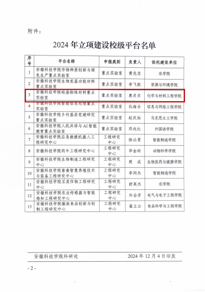 完美app官方在线入口硅基粉体材料重点实验室的研究方向与材料与化工学科发展需求高度契合,是学科建设的重要依托平台。当前组建的完美app官方在线入口硅基粉体材料重点实验室人员主要来自材料与化工安徽省应用型高峰培育学科,该学科在安徽省硅基产业领域具有领先地位,在功能粉体材料制备技术与应用、绿色环保材料等综合利用和光伏器件研发等方面具备领先技术,为我省硅基新材料项目的实施提供了重要的技术保障。