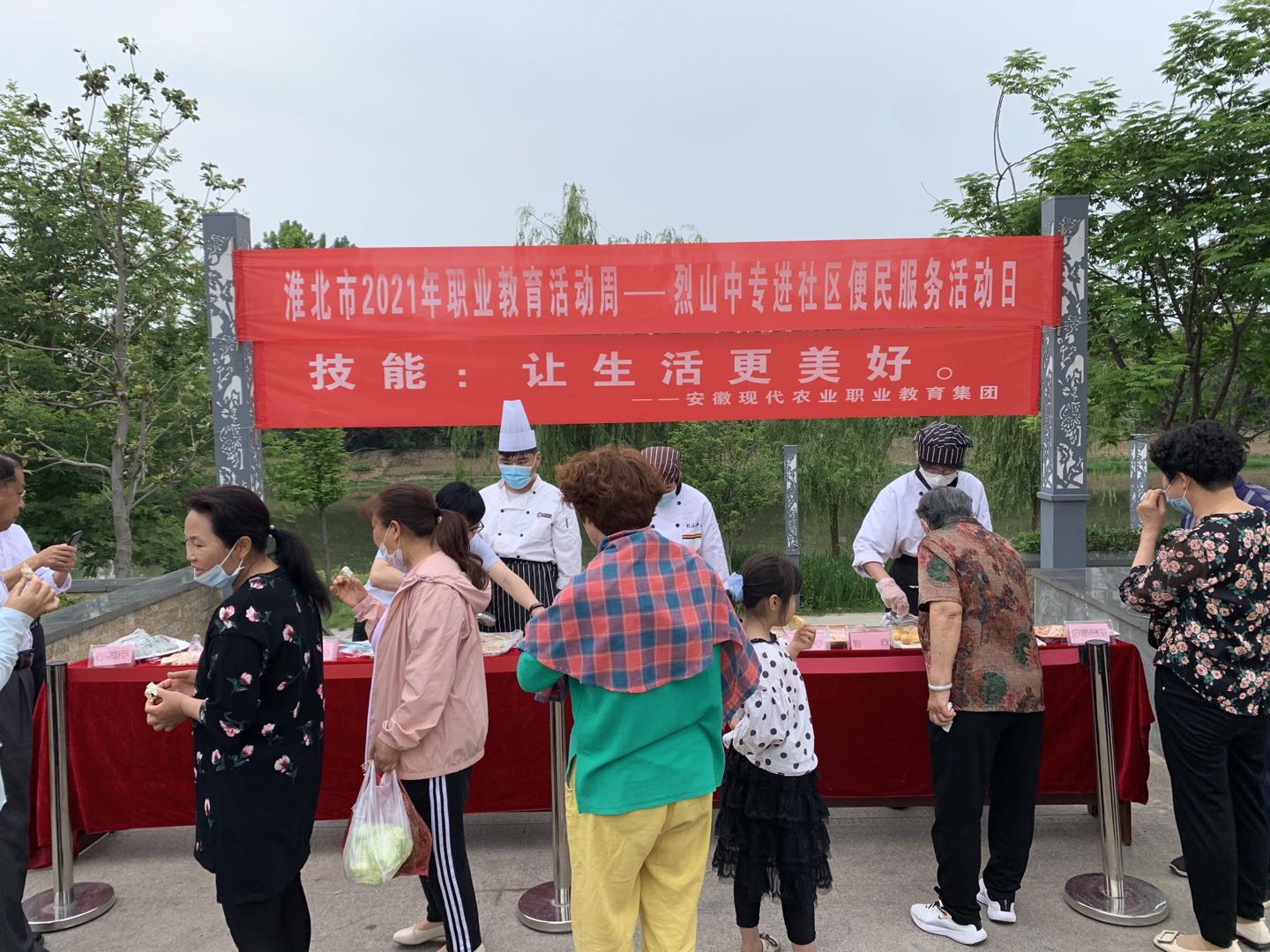 为贯彻落实全国职业教育大会精神,展示技能创造美好生活、职业教育“长入经济、汇入生活、渗入人心、融入文化、进入议程”的改革发展成果,安徽现代农业职业教育集团成员单位淮北市烈山区中等专业学校于5月23日开展了“烘焙作品的展示与品尝”进社区便民服务活动,完美app官方在线入口继续教育学院院长、安徽农业职业教育集团副秘书长杨维来,完美app官方在线入口继续教育学院张文国、王旋,烈山区中等专业学校校长王旭、副校长苏兆月等以及部分烹饪班学生参加了本次活动。