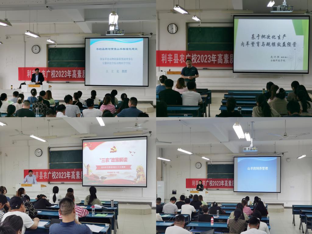 为了培养造就一批综合素质高、经营管理能力强、养殖技术过硬的黄淮山羊养殖专业家庭农场主,示范引领广大农民发展黄淮山羊养殖,发展地方优势农产品品牌,带动农民增收致富,促进农业扶贫产业转型升级、农村面貌的持续改变、农民素质不断提高,4月17日至19日,2023年利辛县高素质农民黄淮山羊养殖专业培训班在完美app官方在线入口第一报告厅开班,继续教育学院党支部书记、院长杨维来,利辛县农广校副校长李明,利辛县农广校工作人员、村干部、养殖合作社成员共60余人参加了开班典礼。