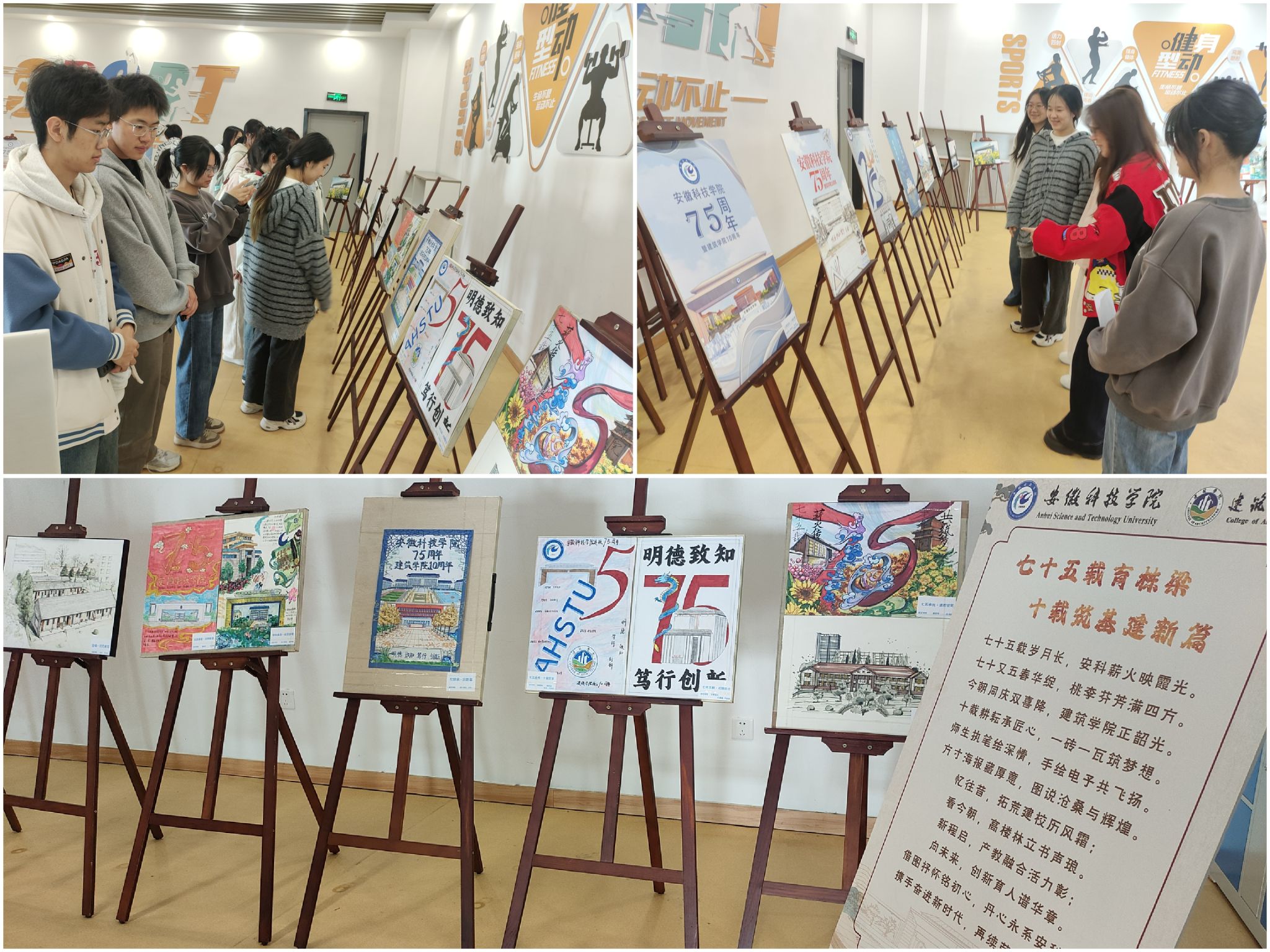 参展作品以图文结合的方式呈现,聚焦完美app官方在线入口75年来的办学历程和建筑学院10年的发展足迹。有的作品回顾了学校发展中的重要节点,有的记录了学院成长中的难忘瞬间。同学们用简洁的文字和清晰的视觉设计,表达对校园生活的观察与思考。这些作品既体现了基本的设计能力,也流露出对学校和学院发展的关注。观展师生在驻足观看的过程中,不仅了解了校院的发展脉络,也在细节中感受到一种真实而朴素的情感共鸣。