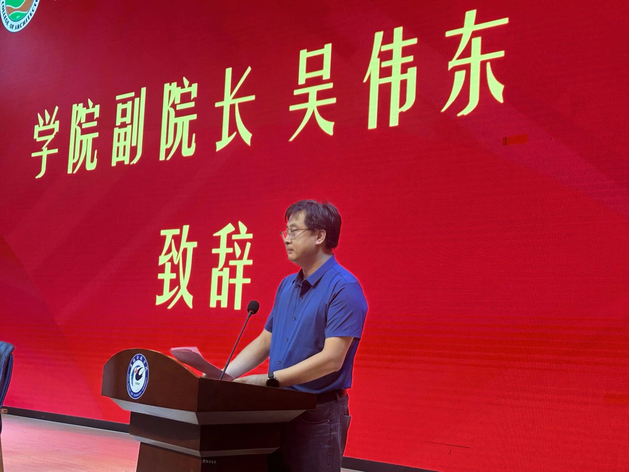 在专业介绍中,学院副院长张伟详细阐述了各专业的学科体系、课程设置、培养方案,生动诠释了建筑领域的魅力与挑战。随后结合各专业特色给全体2025级新生上了一堂生动的专业“第一课”。最后他勉励全体2025级新生们要珍惜宝贵的青春时光,努力学习、坚定理想,砥砺奋斗,书写属于自己的辉煌篇章。