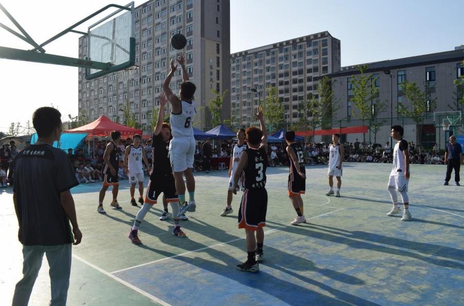 双方经过小组赛、淘汰赛的突围,最终会师决赛。赛前双方队员斗志满满,志在必得,“战斗”一触即发,双方观众齐聚现场,为各自学院呐喊助威。随着裁判一声哨响,比赛正式开始,建筑学院队员积极配合,一次次精彩的抢断,精准的投篮,将比分逐渐拉开;对方也不甘示弱,相互鼓励,接连几个三分球把比分缩小,上半场结束后,建筑学院28:20电气学院,暂时领先。