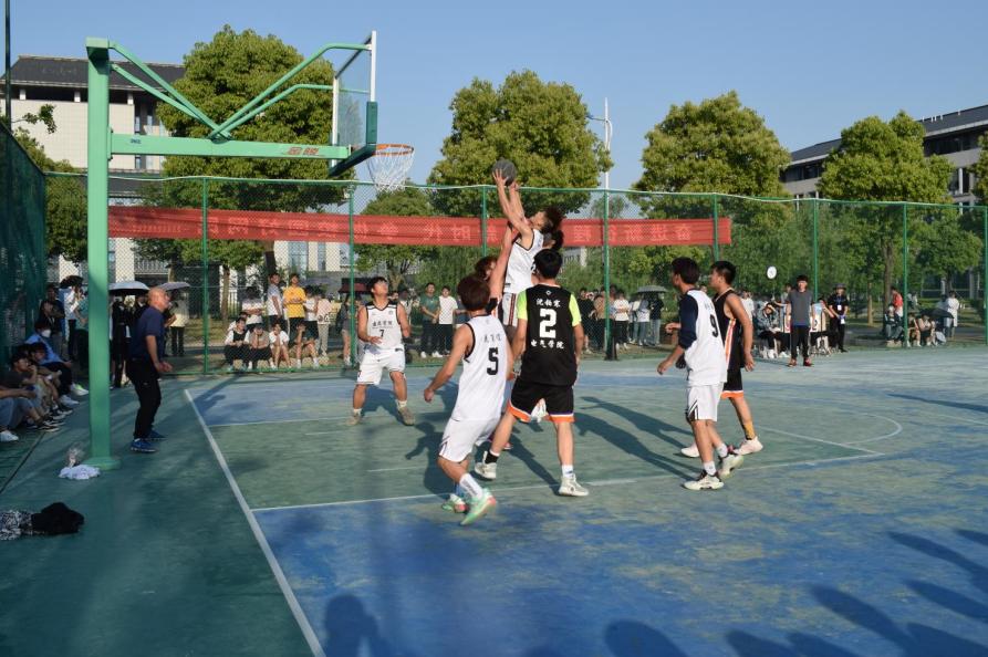 经过半场休息后,双方迎来了下半场比赛。比赛继续,建筑学院队员精心组织,快速传导,寻找空位机会,持续拉开比分,但此时体力下降厉害;面对电气学院强势进攻,建筑学院队员依然顽强拼搏,利用漂亮的运球技巧,摆脱了对方球员的围追堵截,一个漂亮精准的三分球划空而过,球进了!随着终场一声哨响,建筑学院以55:36的比分,摘得分区冠军!!