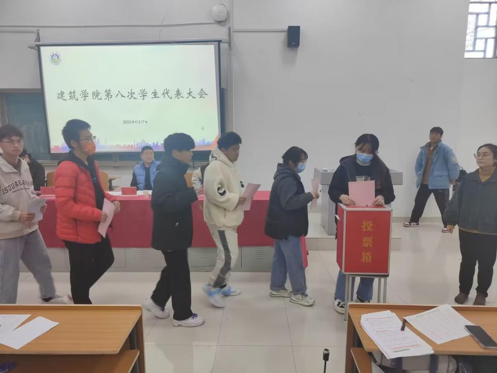 大会在庄严的国歌声中拉开序幕。首先由建筑学院第七届学生会执行主席孙玉慧做工作报告。报告阐述了学生会各部门职责,回顾了院学生组织过去一年里的各项工作情况,并且指出了学生组织当前面临的新形势新挑战,同时也祝愿新一届学生组织工作越来越好。随后,大会表决通过了《建筑学院第八届学生委员会委员选举办法(草案)》和《建筑学院第八次学生代表大会总监票人、监票人建议名单(草案)》,选举产生了出席完美app官方在线入口第十五次学生代表大会正式代表、建筑学院第八届学生会主席团成员、建筑学院第八届学生委员会委员。