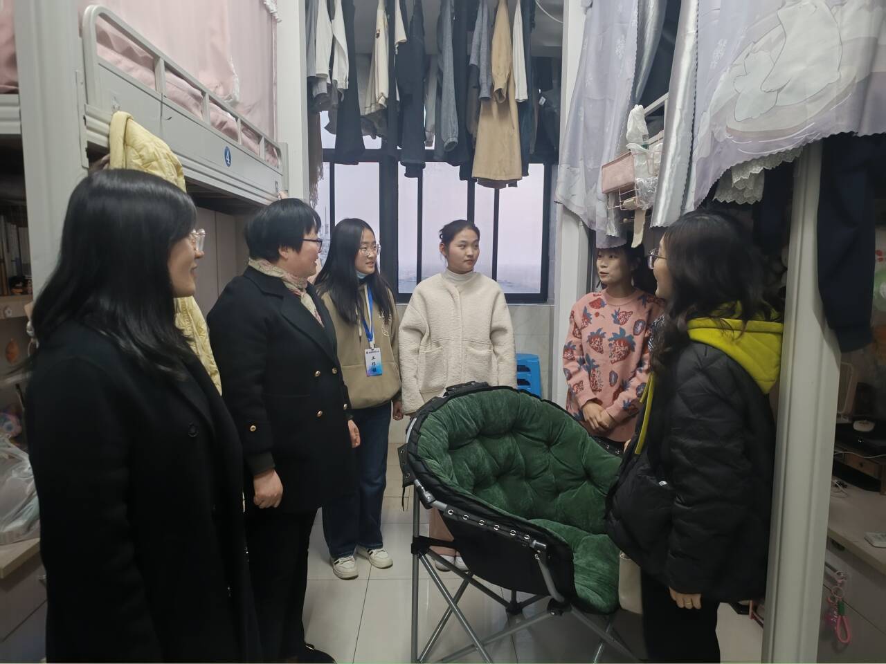 此次检查分为两组,分别对学生宿舍的用电安全、内务卫生、防火防盗等方面隐患进行了排查,提醒同学们务必注意宿舍安全问题、提高安全意识,禁止使用违规电器,不私拉乱扯电线,不存放易燃、易爆物品等,对宿舍存在的安全卫生问题现场进行了整改。检查中,老师们与同学们亲切交谈,细致地讲解消防安全知识,详细询问了解他们目前的学习和生活情况,听取他们对于学生宿舍管理工作的意见和建议。