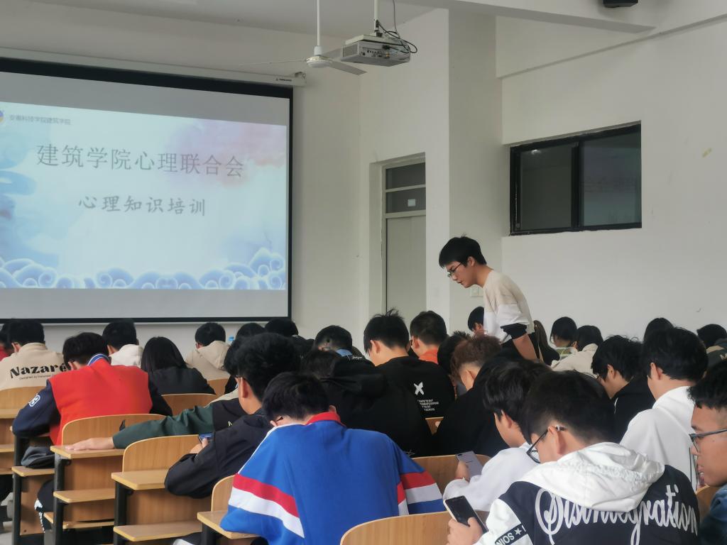 新生入校以来,适应和发展大学生活是首要问题,解决其过程中所产生的心理问题和加强专业的心理知识技能更是重中之重,为加强新生心理建设,发挥心理委员及宿舍安全宣传员的职能和影响。建筑学院于10月31日面向20级新生心理委员及宿舍健康宣传员开展心理基础知识培训。此次培训在致知楼c108教室举行,由建筑学院心理联合会会长韩天赏主讲,全体新生心理委员及宿舍健康宣传员参与学习。