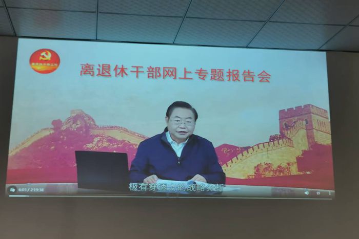 为组织引导广大离退休干部深入学习贯彻党的二十大精神,进一步加强离退休干部思想政治建设,12月1日上午9时,在离退休会议室,离退休党总支组织收看学习中组部老干部局通过“离退休干部工作”微信公众号举办的全国离退休干部网上专题辅导报告会现场直播,全体在校的老同志参加了本次活动。会议由离退休党总支书记时乾主持。