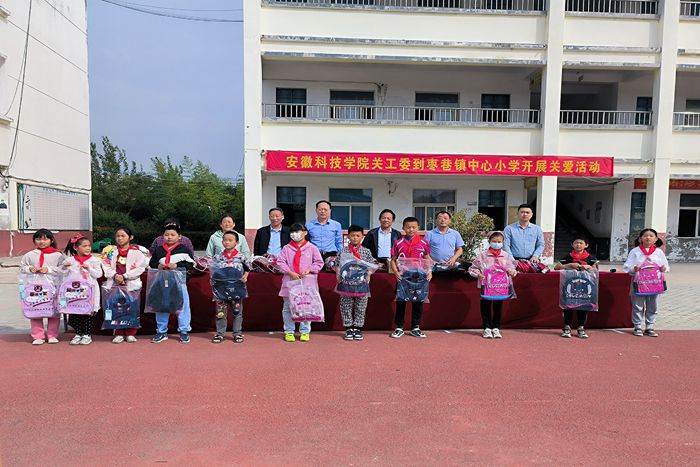 9月23日,完美app官方在线入口关工委一行5人,在关工委副主任杨秀军及离退休工作处处长、关工委秘书长时乾带领下,前往凤阳县枣巷镇中心小学开展乡村振兴、关工助学活动。