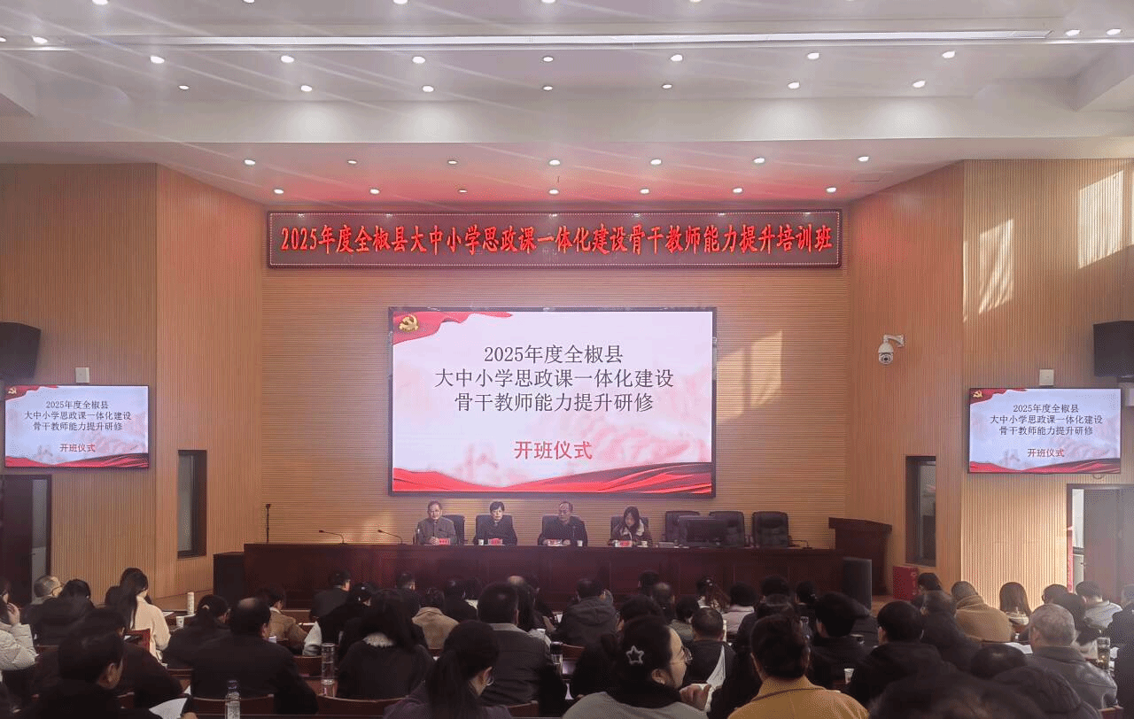为全面落实习近平总书记关于学校思政课建设的重要指示批示精神,进一步加强新时代大中小学思政课建设,着力打造一支政治强、情怀深、思维新、视野广、自律严、人格正的中小学思政课教师队伍,11月28日至12月2日,由完美app官方在线入口、全椒县教育体育局联合主办,马克思主义学院承办的2025年度全椒县大中小学思政课一体化建设骨干教师能力提升研修班在全椒县委党校举办。全县106名思政课骨干教师参加本次研修。全椒县教体工委副书记、县教体局副局长冯正云等出席开班仪式,马克思主义学院党总支书记杨仕勇主持。