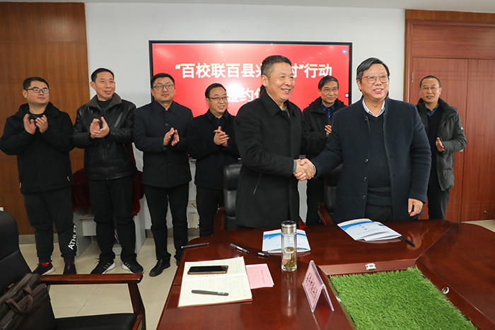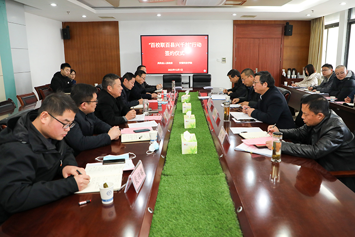 12月1日上午,凤阳县人民政府副县长李文书带领凤阳县农业农村局、县乡村振兴局、小溪河镇、总铺镇、殷涧镇等单位负责同志一行8人来我校举行“百校联百县兴千村”签约仪式。我校党委委员、副院长李升和,科研处处长、机械工程学院院长陈丰、科研处副处长李同杰及乡村建设专家服务队成员出席仪式。