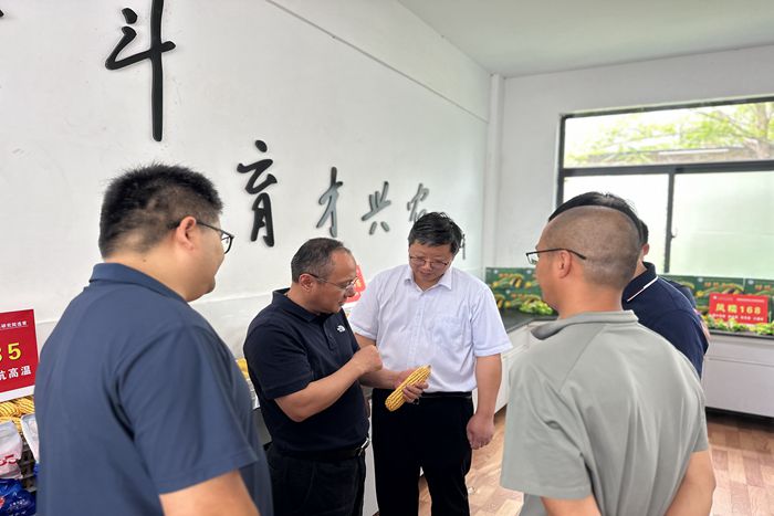 6月26日,安徽省农业农村厅种业管理处处长周策,高级畜牧师王恒一行来我校实地考察调研种质资源保护与创新工作。校党委委员、副院长李升和携科研处、农学院有关负责人及学校各省级种质资源库和基因库的负责人陪同调研。