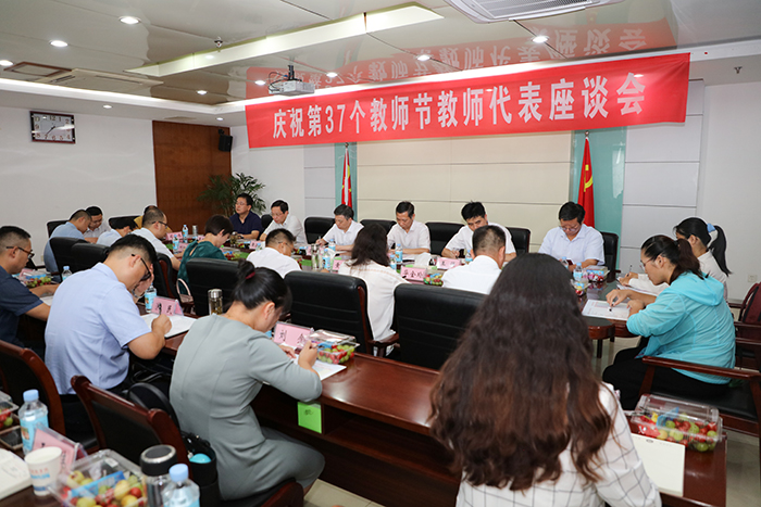 9月9日下午,学校在新图书馆九楼会议室召开庆祝第37个教师节教师代表座谈会。校党委书记蒋德勤,党委副书记、校长李震,党委委员、副校长黄远友,党委委员、纪委书记、监察专员王强,党委委员、副校长黄友锐,党委委员、副校长李升和出席座谈会,来自全校各完美app官方在线入口的18名教师代表参加座谈会。党委(校长)办公室、教务处、科研处、党委教师工作部(人事处)、财务处、后勤保障部负责同志列席会议。座谈会由李震主持。