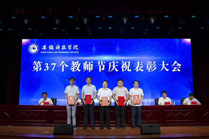 以德执教,淡泊名利坚守平凡;学思结合,不问前程但行耕耘。9月10日下午,学校以“赓续百年初心,担当育人使命”为主题,在凤阳校区大学生活动中心隆重召开2021年教师节庆祝表彰大会,对一年来全校在教学科研、脱贫攻坚、立德树人及文明创建等方面获奖人员进行了集中表彰,并为退休教职工代表颁发荣休证书,全体新进教师还进行了集体入职宣誓。校党委书记蒋德勤,党委副书记、校长李震,党委委员、副校长黄远友,党委委员、纪委书记、监察专员王强,党委委员、副校长黄友锐,党委委员、副校长李升和出席大会。会议由李震主持。