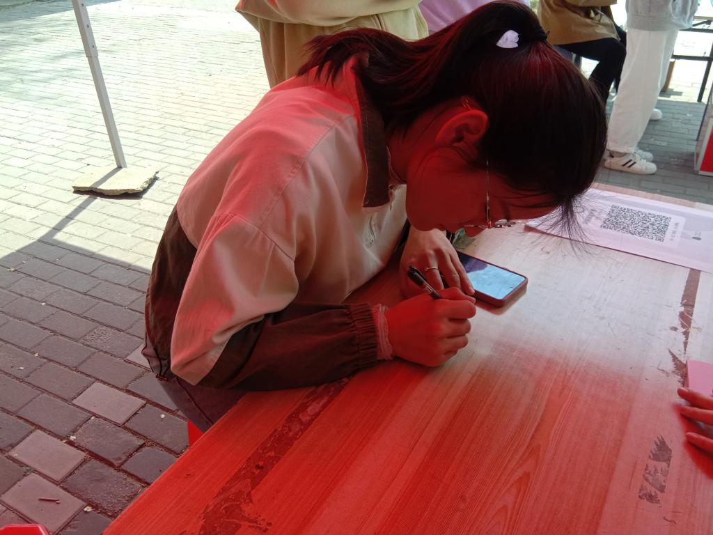 为了更好地深入排查解决学生反映强烈的困难和问题,落实学生信访工作,把转变作风建设同解决学生实际问题有机结合,增强学生的获得感、幸福感和安全感,人文学院党委于4月17日在东西校区摆点开展“老师我想对您”说活动。