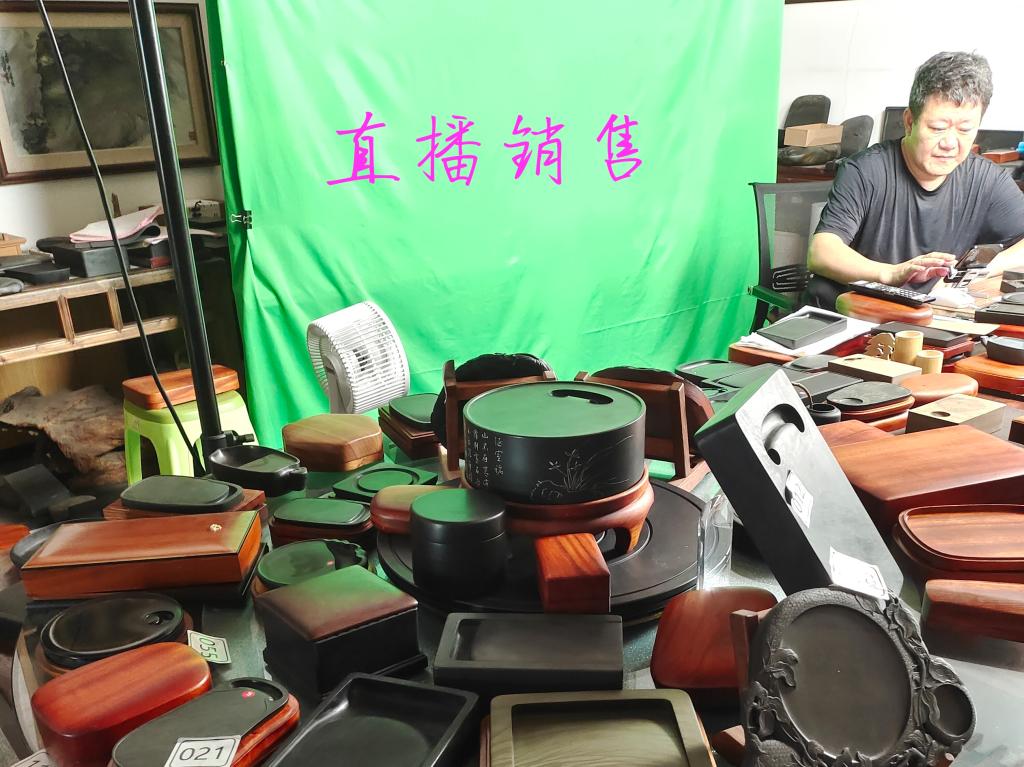 7月22日,团队成员参观了歙砚艺术博物馆,了解徽墨、徽砚的发展历史,通过访问店主和工艺传承人了解相关产品销售和发展现状。目前,由于疫情、制作耗时长、成本高、传承难等多个原因,导致商品陈列在店中难以卖出,新一代的工艺传承者少之又少,歙砚的发展面临着新的挑战。