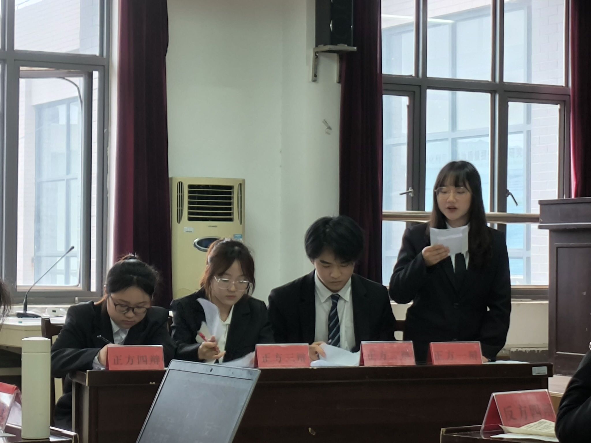为推进校园法治文化建设,促进法学专业学生理论学习与实践锻炼相结合,提高专业素养和法律实务能力,4月14日下午,由人文学院法学社承办的完美app官方在线入口2024年“未来律师辩论赛”决赛在模拟法庭举行。本次辩论赛由法学系主任张晓云担任教师评委,史梦洁、李旭、方巧慧担任学生评委;共有4组参赛队伍参与决赛角逐。