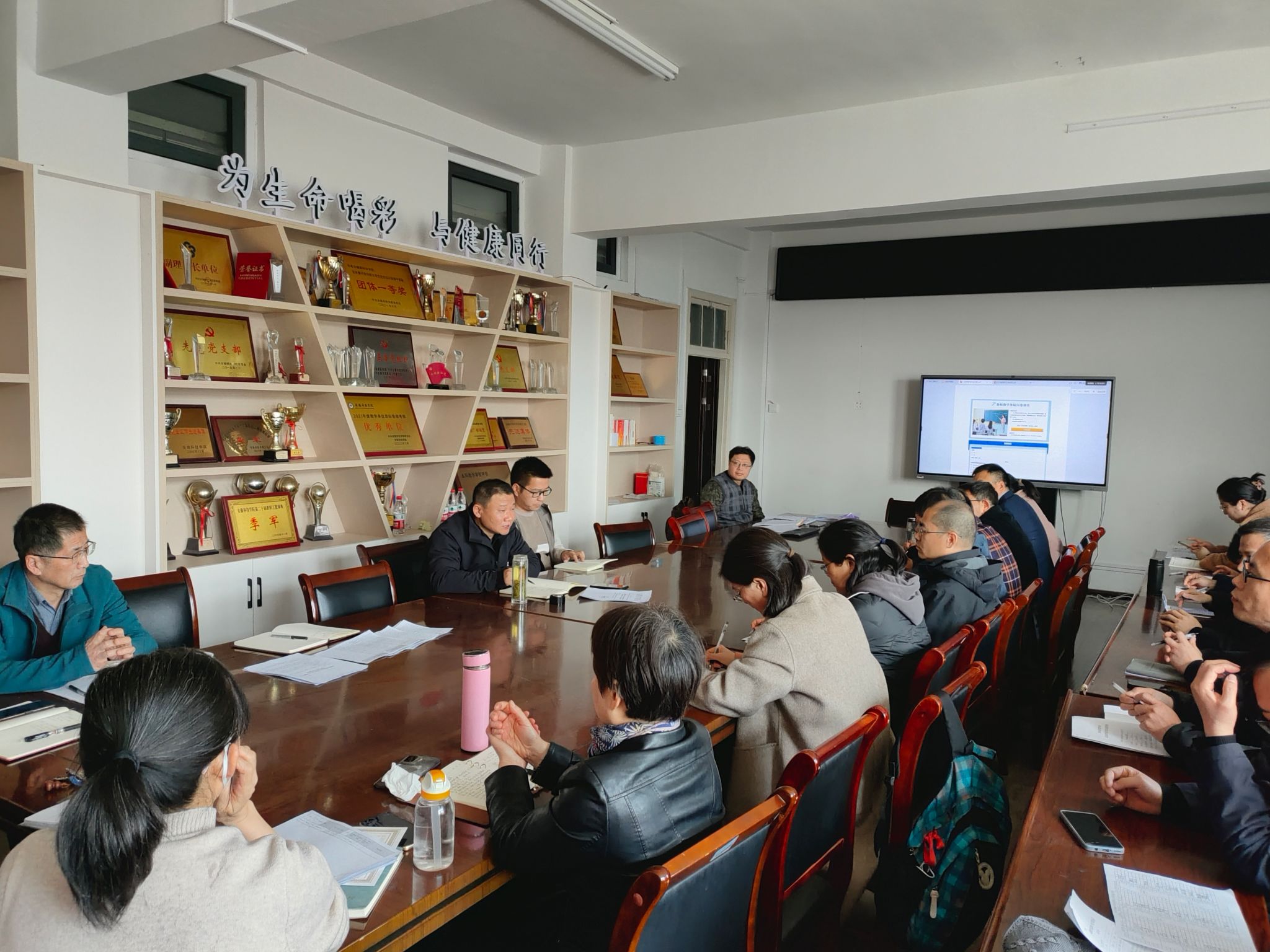 3月20日下午,生命与健康科学学院副院长钱立生在学知楼417会议室主持召开全体教职工会议,布置审核评估迎评全面自查工作。学院党政领导和全体教职工参加会议。
