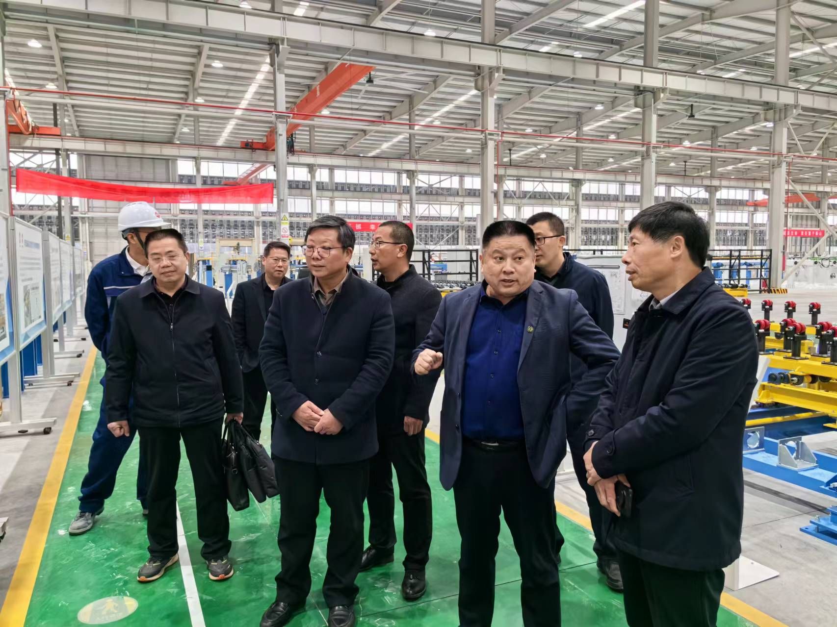 时伟一行参观调研了智能制造大数据中心、5G数字化电气车间、智能制造中心车间、压延机组装车间,观看了企业宣传片,听取了校企合作成果汇报。
