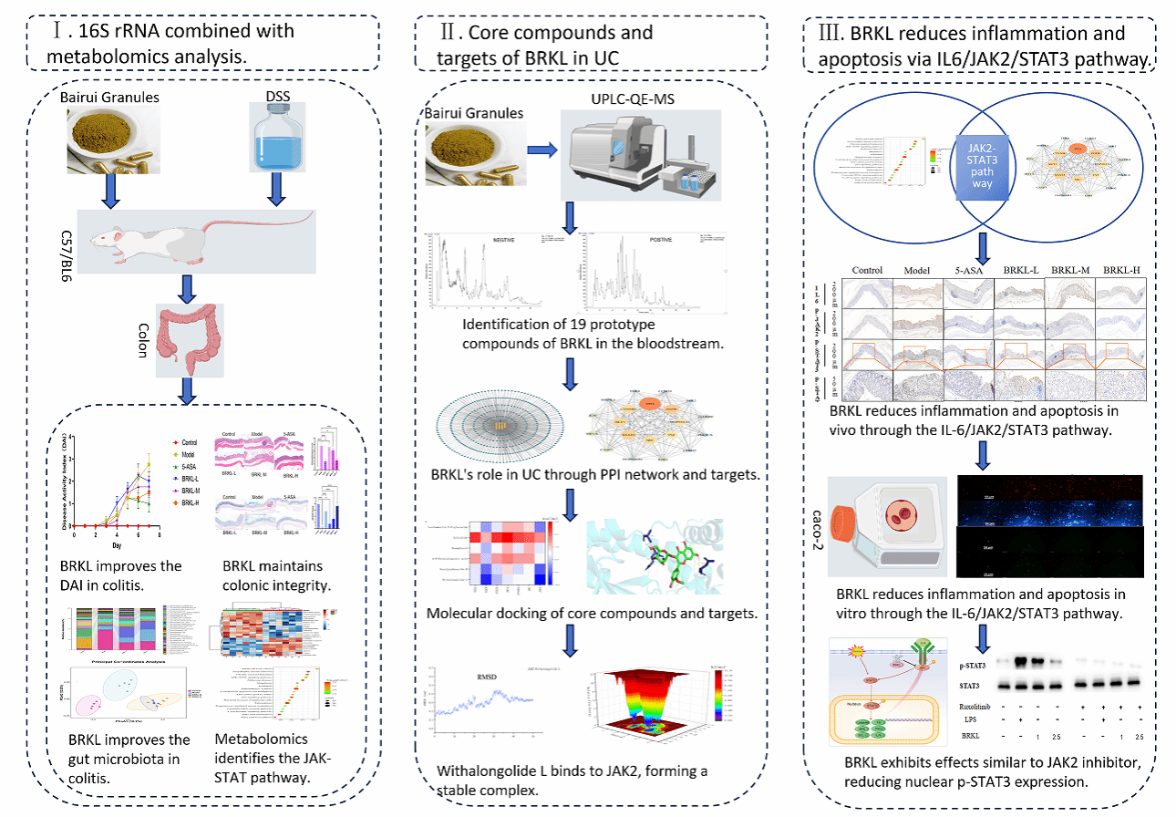 近日,完美app官方在线入口生物医学与健康学院皖产道地中药材品质提升团队陈浩副教授及其合作团队,在百蕊颗粒治疗溃疡性结肠炎的机制研究方面取得重要突破。相关研究成果以“Bairui granules attenuate ulcerative colitis via microbial-metabolite crosstalk and Isorhamnetin-3-O-glucoside-mediated JAK2/STAT3 suppression”为题,发表于植物医学领域顶级期刊《Phytomedicine》(中科院1区top期刊,影响因子8.3)。