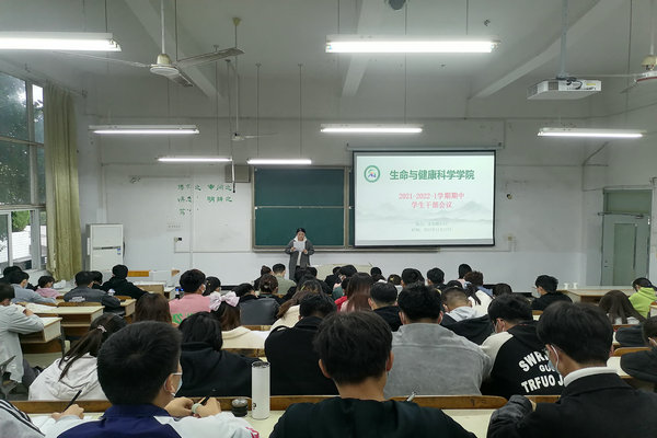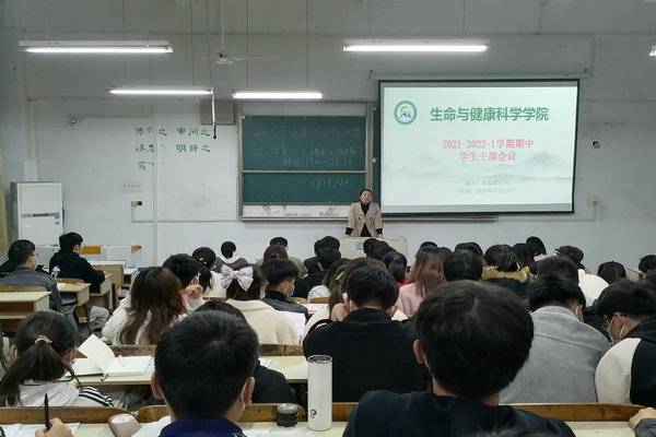 11月17日下午,生命与健康科学学院在求知楼A101教室召开本学期期中学生干部会议。学院党委副书记彭丽萍,党政办公室主任王传林,正科级辅导员兼组织员邓艳萍,团委副书记姜毅,副科级辅导员刘国祥以及专职辅导员孙玉楼、张迪出席本次会议,各班级团支部书记、班长,学习委员及院学生会主要干部参加本次会议。会议由姜毅主持。