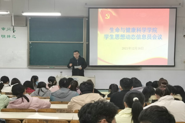 12月16日中午,生命与健康科学学院在求知楼A101教室召开学生思想动态信息员会议。学院党政办公室主任王传林,各班级思想动态信息员参加会议。