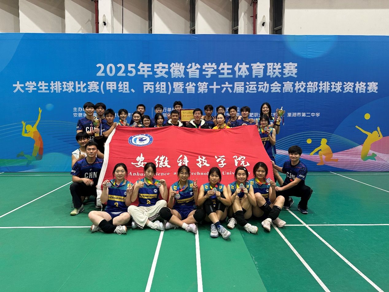 12月10日,2025年安徽省学生体育联赛大学生排球比赛暨省十六届运动会高校部排球资格赛在巢湖市圆满落幕。本次比赛由安徽省教育厅、安徽省体育局联合主办,共有来自全省21所高校的397名运动员参与甲组角逐。我校派出男、女排球队两支队伍参赛,由体育教学部党总支书记王松华担任领队,李影、邱家凯两位老师担任教练。经过激烈比拼,校女子排球队夺得亚军,男子排球队获得第四名,荣获两项二等奖和体育道德风尚奖,两支队伍成功获得2026年安徽省第十六届运动会高校部排球比赛资格。