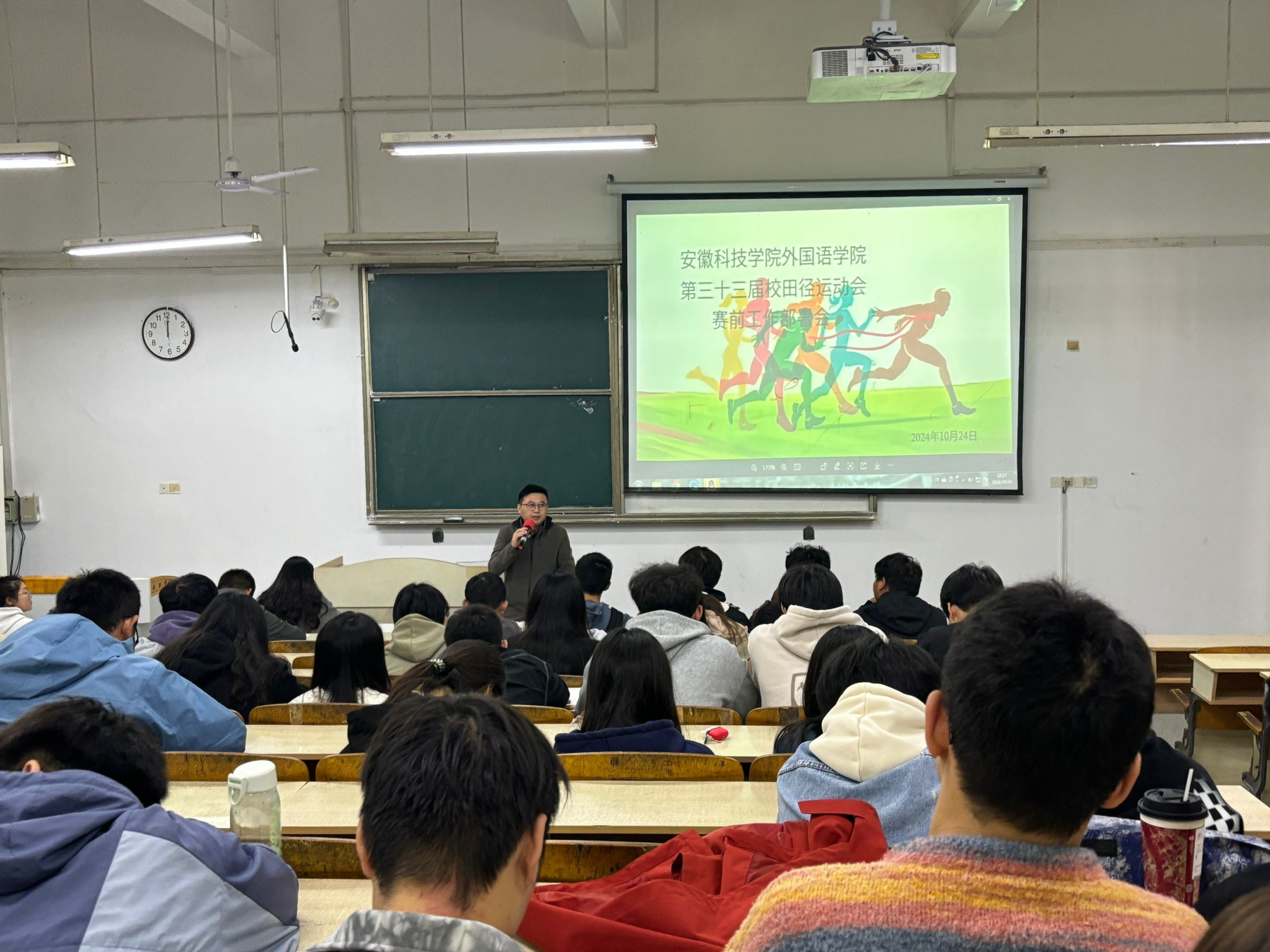 校第33届运动会开幕在即,为做好各项准备工作,外国语学院于10月24日在求知楼A座107教室召开了赛前动员大会。学院学生会全体学生干部,各班班长、体育委员、全体运动员参加会议。会议由学院团委副书记宋兵兵主持,学院党委副书记张海亮出席会议并讲话。