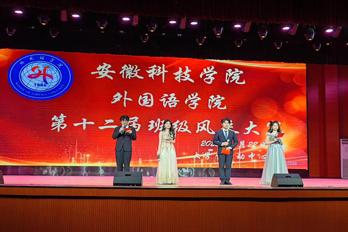 为增强学生集体凝聚力与团结协作意识,促进各班级之间的文化交流,展现当代学生积极向上的精神风貌,4月22日晚,外国语学院在校大学生活动中心举办第十二届班级风采大赛。学院党委书记蔡为青、副书记张海亮以及全体辅导员出席大赛。凤阳校区各学院学生艺体中心主任应邀担任本次比赛评委。