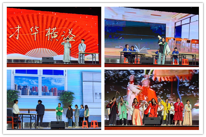 比赛中,同学们发挥各自的才艺专长,表演各具特色,充分展现班级风采。共有17个班级的文艺节目参加比赛,节目形式丰富多样,呈现内容积极向上,舞台编排富有创新,为在场的评委及观众献上了一场视听盛宴。独具特色的舞台剧颂扬党的丰功伟绩;动感十足的舞蹈展现安科学子的青春活力;动听的英文歌曲彰显了外国语学院的独特魅力;精彩的相声表演充分调动现场活跃气氛。各班级的表演得到了在场观众与评委们的一致肯定,现场掌声不断,气氛十分热烈。