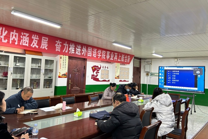 12月13日下午,外国语学院农业文化译介与传播团队按照计划在学院会议室开展了翻译研究学术交流活动。本次活动主要包括两个环节:一是蔚艳梅、董杰两位老师就近期在南京师范大学的访学研修进行经验交流;二是王翊老师进行学术汇报。本次学术交流活动由团队负责人邓兆红教授主持。