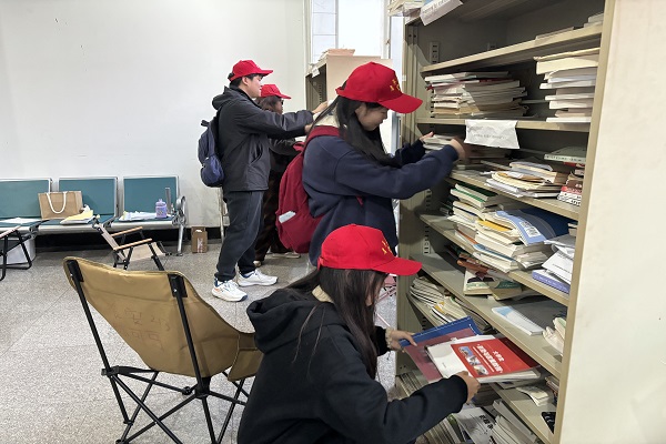 参加志愿服务的党员和入党积极分子,在党支部书记和图书馆老师的指导下,分成了工作小组,各司其职,将凌乱的书籍按照要求重新进行排序整理,将柜台上不同色标的图书按照类别找到对应的书架并将其归位,方便读者们查找借阅。外国语学院学生党员和入党积极分子的加入,缓解了图书馆在学期初图书整理人手不足的困难,受到了图书馆老师的一致认同。