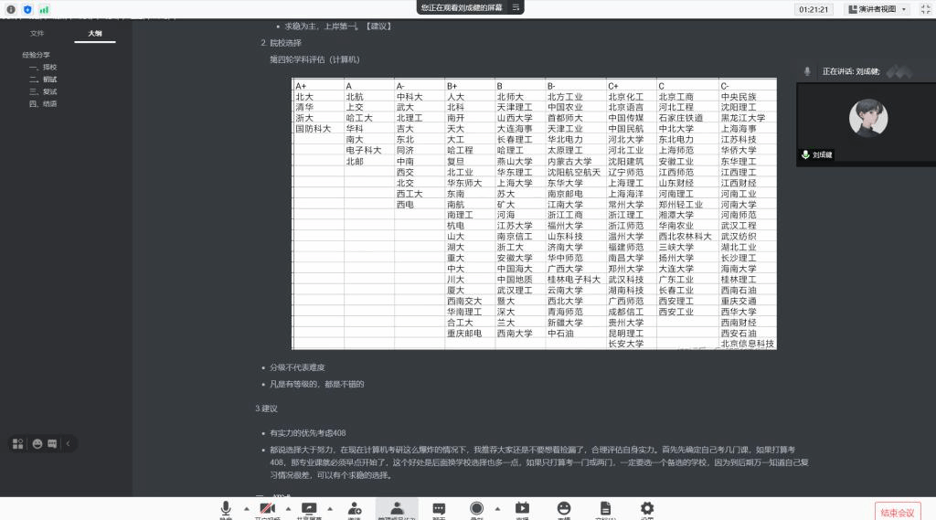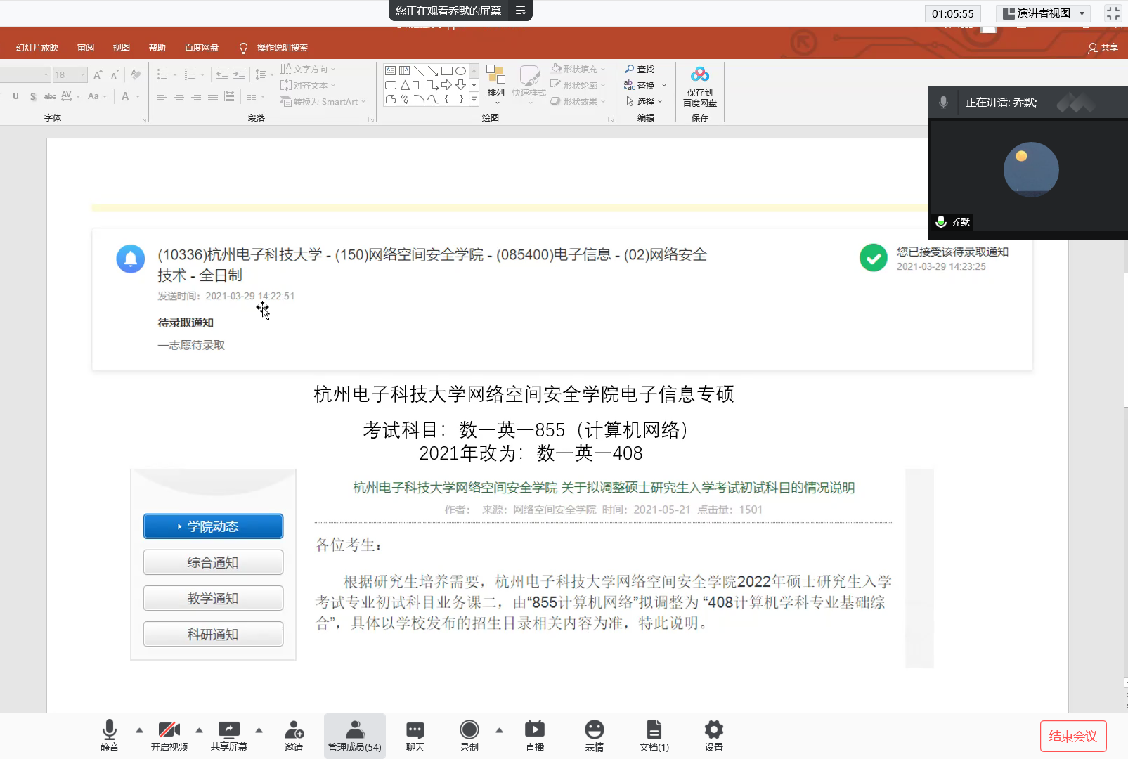 为引导学院学生树立正确考研目标,掌握相关考研技巧,了解更多考研信息,6月12日,信息与网络工程学院通过腾讯会议开展线上考研经验交流会。学院专职辅导员陈凯,六位2017级优秀考研学子刘成健、乔明磊、刘奇、朱骏华、唐成伟、王康出席本次交流会,2018级各班级拟考研同学参加了本次会议,会议由陈凯主持。