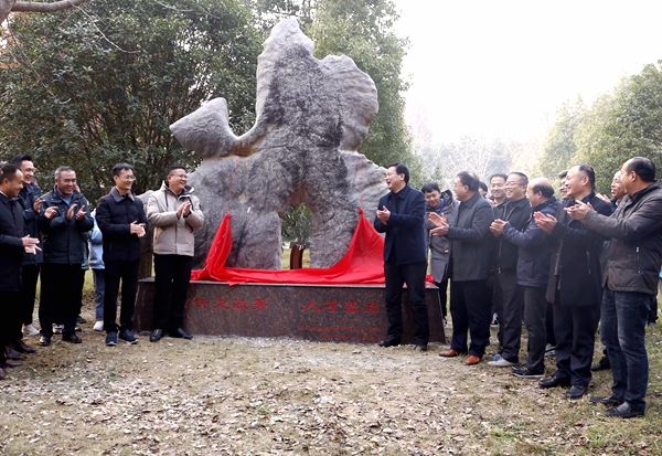 恭贺母校70华诞纪念石是以胡四化、于洪波为代表的中牧公司校友集资捐赠。纪念石为灵璧石,外形主体酷似一目视前方、昂首奋进的大象,石头顶部好似一条锦鲤摆动尾部;基座镌刻“钟灵毓秀、人才辈出”八个大字。吉象、鲤鱼取吉祥如意之意,代表着校友祝福母校越办越好,早日实现双一流应用型大学建设目标。