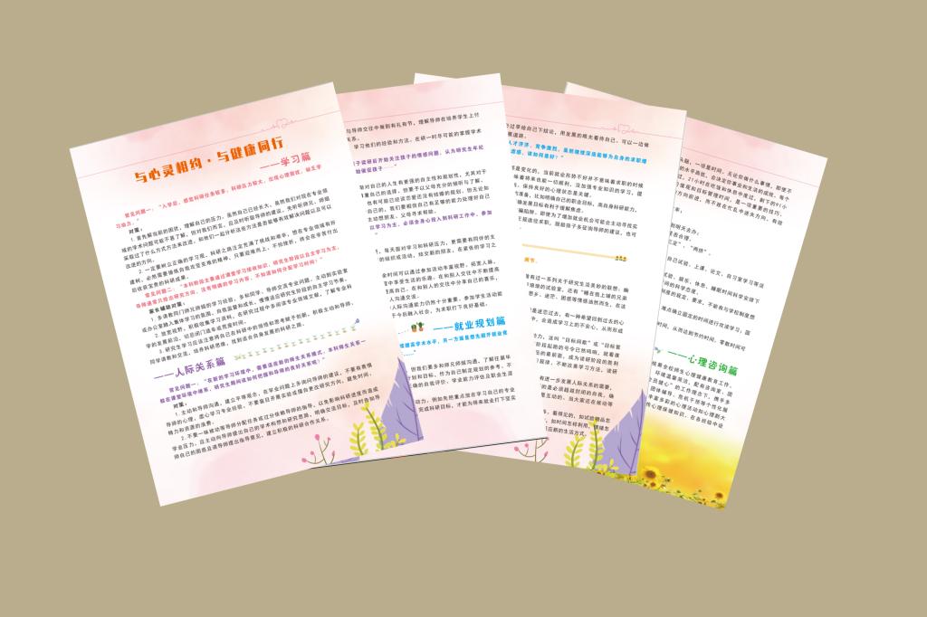 编制一份手册,让心理健康知识成为手边书。通过大量的意见调查与意向收集,完美app官方在线入口研究生会广泛与研究生同学沟通交流,梳理总结了研究生普遍关心关注的心理健康方面的问题,编制了学习篇、人际关系篇、就业规划篇、自我调节篇、心理咨询篇5个篇章的《研究生心理健康宣传手册》,并发放至全校400余名研究生,让心理健康常识真正成为广大研究生“挥手即来”的手边书,时刻提供帮助和参考。