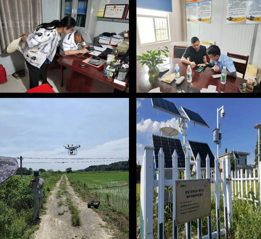 根据安排,志愿服务团队分为数字农业研究院与业务部两个组别分别开展活动。数字农业研究院团队成员在研究院相关技术人员的指导下前往峨桥基地开展采集实时田间水稻数据,包括水稻株高、叶面积、分蘖数、生物量等,进行田间整体与特写图片拍摄,学习识别水稻生育期及病虫草害防治等专业知识。同时辅助技术人员对水稻进行了无人机施放农药,对水稻田中的病虫草害进行相应的防治工作;利用无人机采集到的多光谱图片分析检测不同品种、不同时期、不同疏密条件下的水稻长势。烈日炎炎,但团队成员不辞辛苦,无惧炎热,带上草帽,穿上水鞋,及时跟进数据采集进度,积极主动与技术人员沟通,真正将专业知识践行在田间地头。